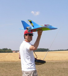 Alors ça vole comment ? Maintenant la Turbine fonctionne parfaitement, et tous nos problèmes semblent (enfin) avoir été réglés. Le décollage à la catapulte, bien plus rassurant qu’à la main, est très impressionnant, et l’atterrissage n’est qu’une formalité tellement l’avion peut être cabré et ralenti. La vitesse horizontale est en revanche limitée par le profil très épais du Twinjet, la puissance ne s’exprimant réellement que lors des montés verticales qui peuvent se faire à perte de vue. Mais le plus incroyable, c’est… le rugissement du réacteur, qui, bizarrement, malgré sa taille, n’est pas plus aigue que celui d’un vrai avion de chasse. Regardez et écoutez les 2 vidéos présentes sur le site www.RCPilot-online.com (rubrique Brèves : celle du 13/10/06 : TwinjetKero)