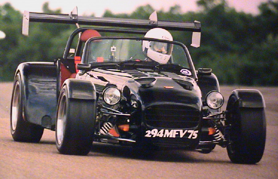 3 modifications sont visibles sur la photo : Aileron, camera embarquée (à gauche du pilote), pneus slicks sur voies élargies au maximum à l'arrière.
