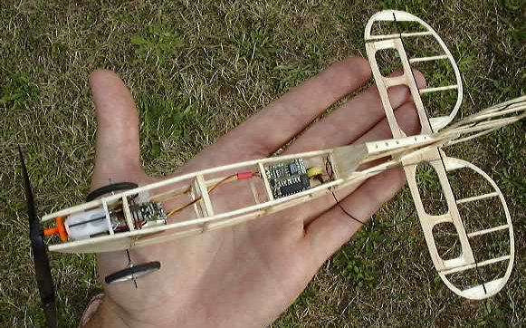 Everything has to be as light as possible. I am using balsa and carbon fiber rod. Total airframe is 8 grammes